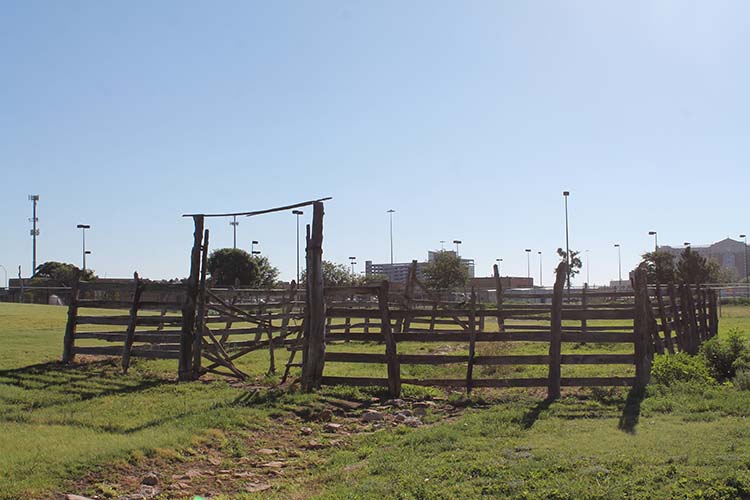 The Wild Cow Corral with its trap gate came from the Block Ranch in Capitan, New Mexico. The old corral demonstrates how cattle were gathered in the high country, unlike the way cowboys performed the task on flat land. In the mountains, ranch hands devised a way to catch the cattle by building wooden corrals among the trees–often using the trees themselves–and putting feed inside the gates. Wild cattle nudged the gates to get to the feed. When the gate closed, the animals could not push it open from within. Cowboys, or “brush poppers,” gathered the cattle and used burros and horses to drag the cows down the mountain to the ranch’s pens for branding. The Wild Cow Corral was donated to the NRHC by Hap Canning, owner of the Block Ranch, and dedicated Oct. 29, 2004.